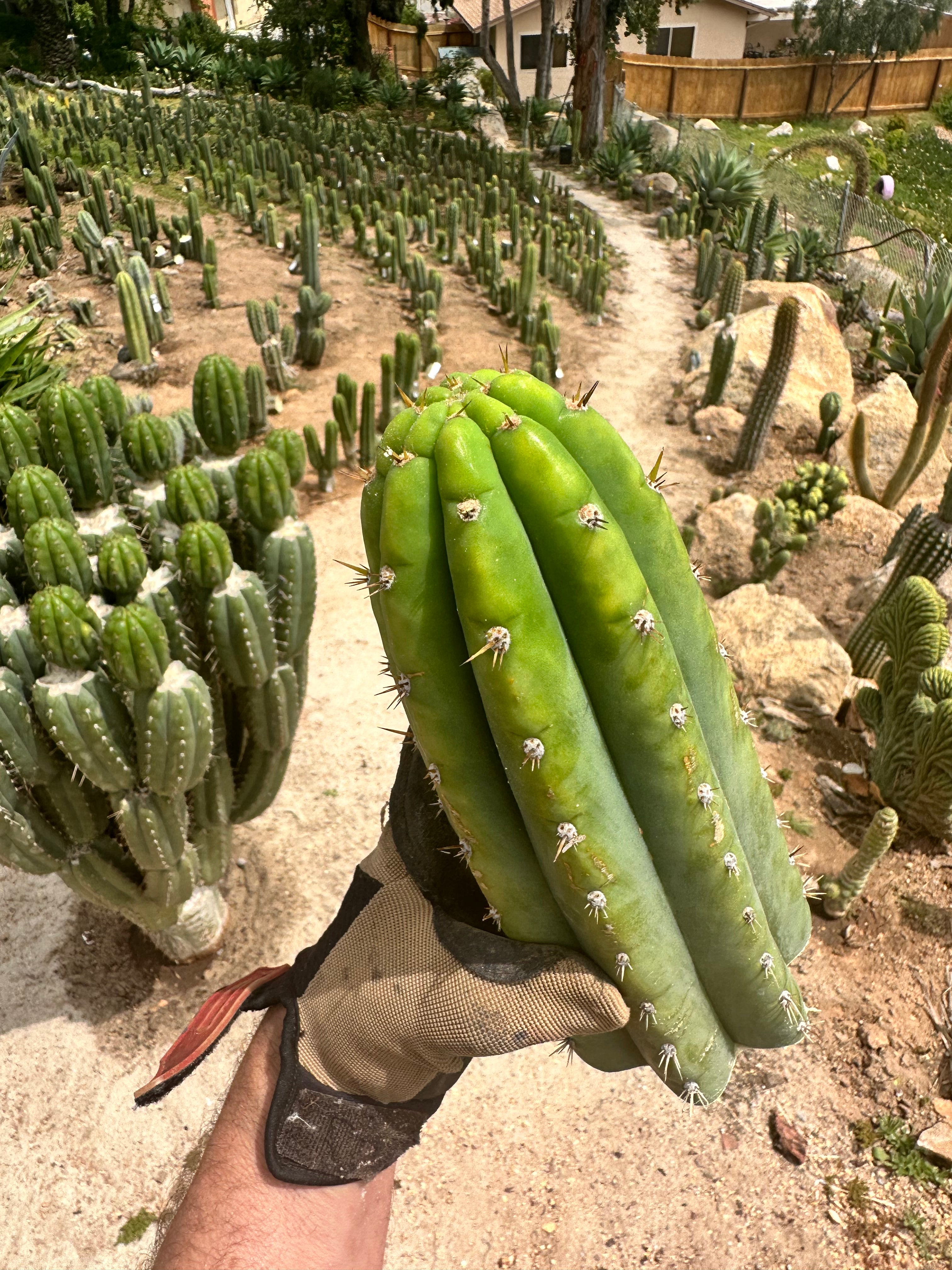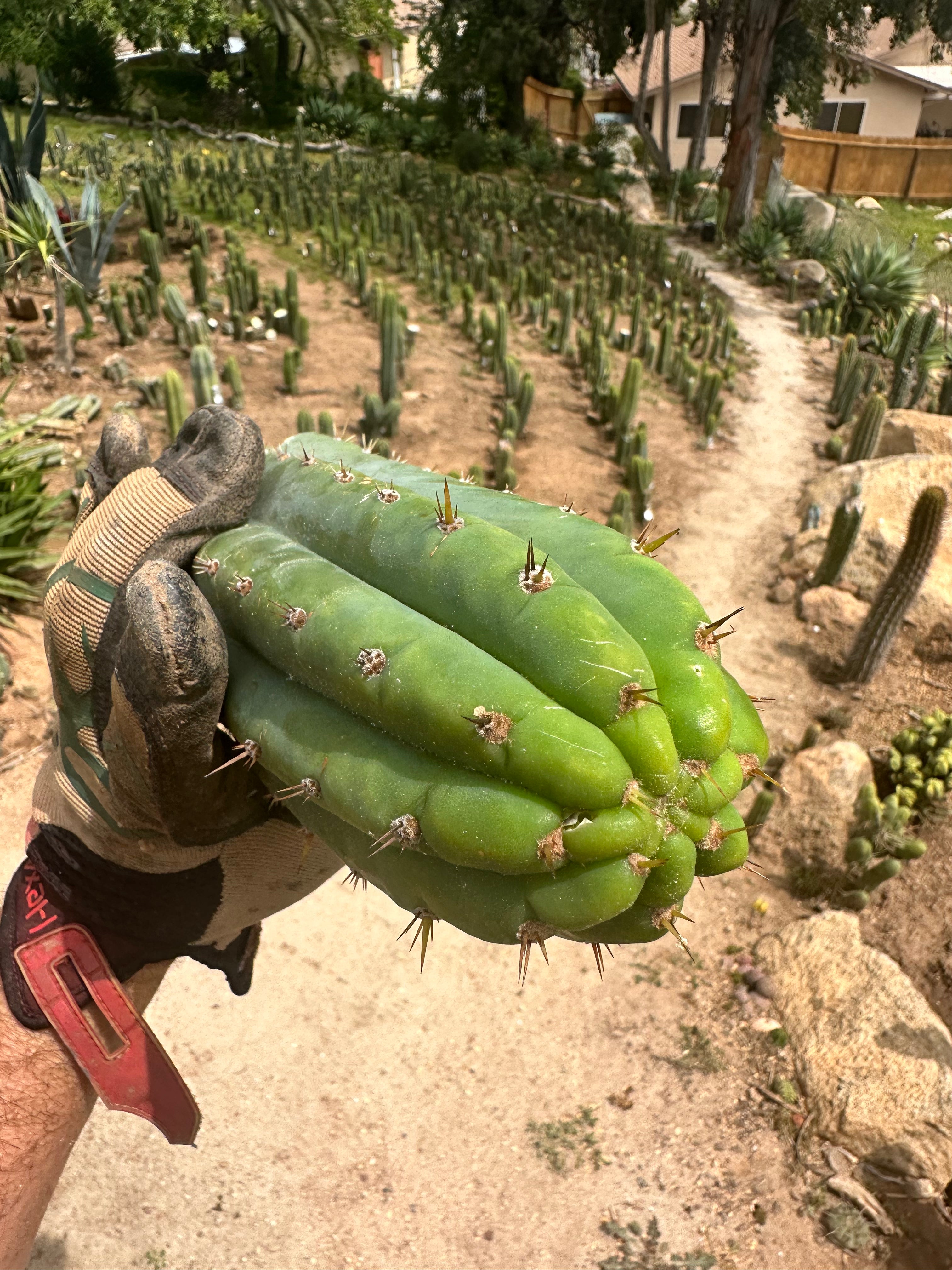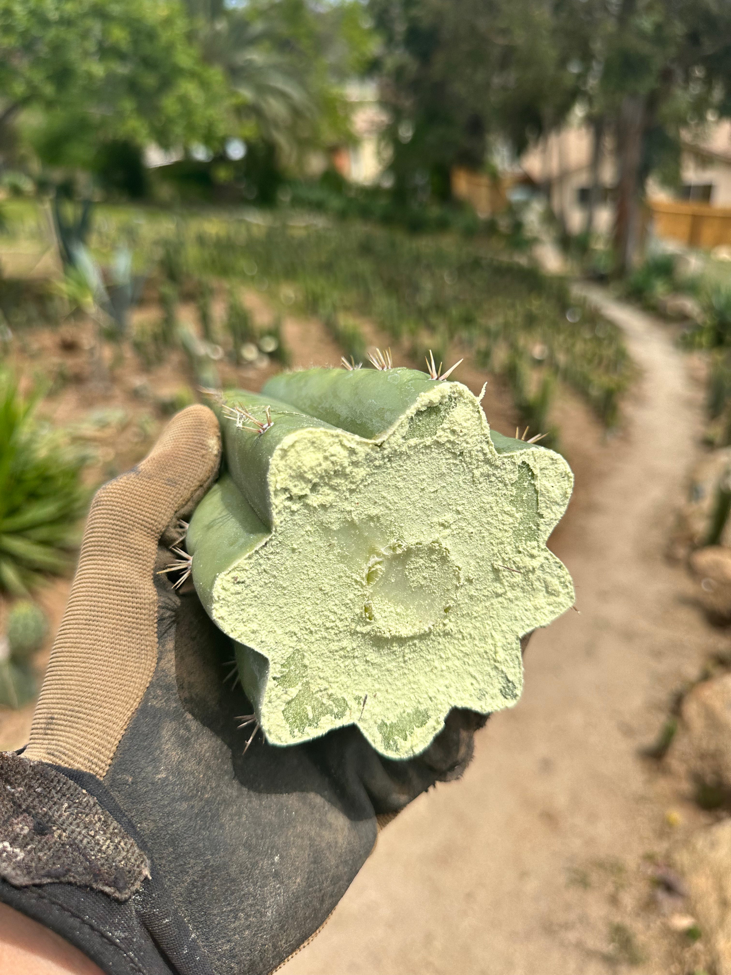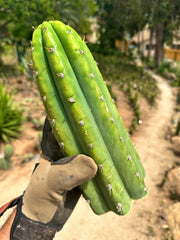 JJOP info — “Jack’s JuulsOP” comes from a good friend in San Diego county. When I was in Ventura, I would drive down and harvest it for the shop about twice a year. Now since the move, I’m only 30 minutes away, so I’ll be harvesting batches more often. What is it? It’s open pollinated Juuls Giant. The OP side is likely peruvianus, but we can’t know 100%, because, according to Jack, a couple other trichs were blooming at the time of pollination on that fateful day in the early 90s (supposedly there was no pc around at the time). One of the seeds was grown into a big multicolumn stand, and then around 05, it was chopped up and log-styled all down the side of his large hillside property. There are now 16 motherstands … bonanza!