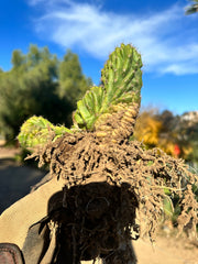 First time I’ve ever listed something crested *and* rooted, and I’m listing 7 of them today! Crested Oscar x TPM. Fun fact — this actually has potency. I did a 10 gram bioassay, back when I was curiosity testing a bunch of my stuff, and this was the only crested thing I tried. I’ve had these in the ground since the move last year, and the roots got busy 💪 . Pricing these a bit differently according to size.