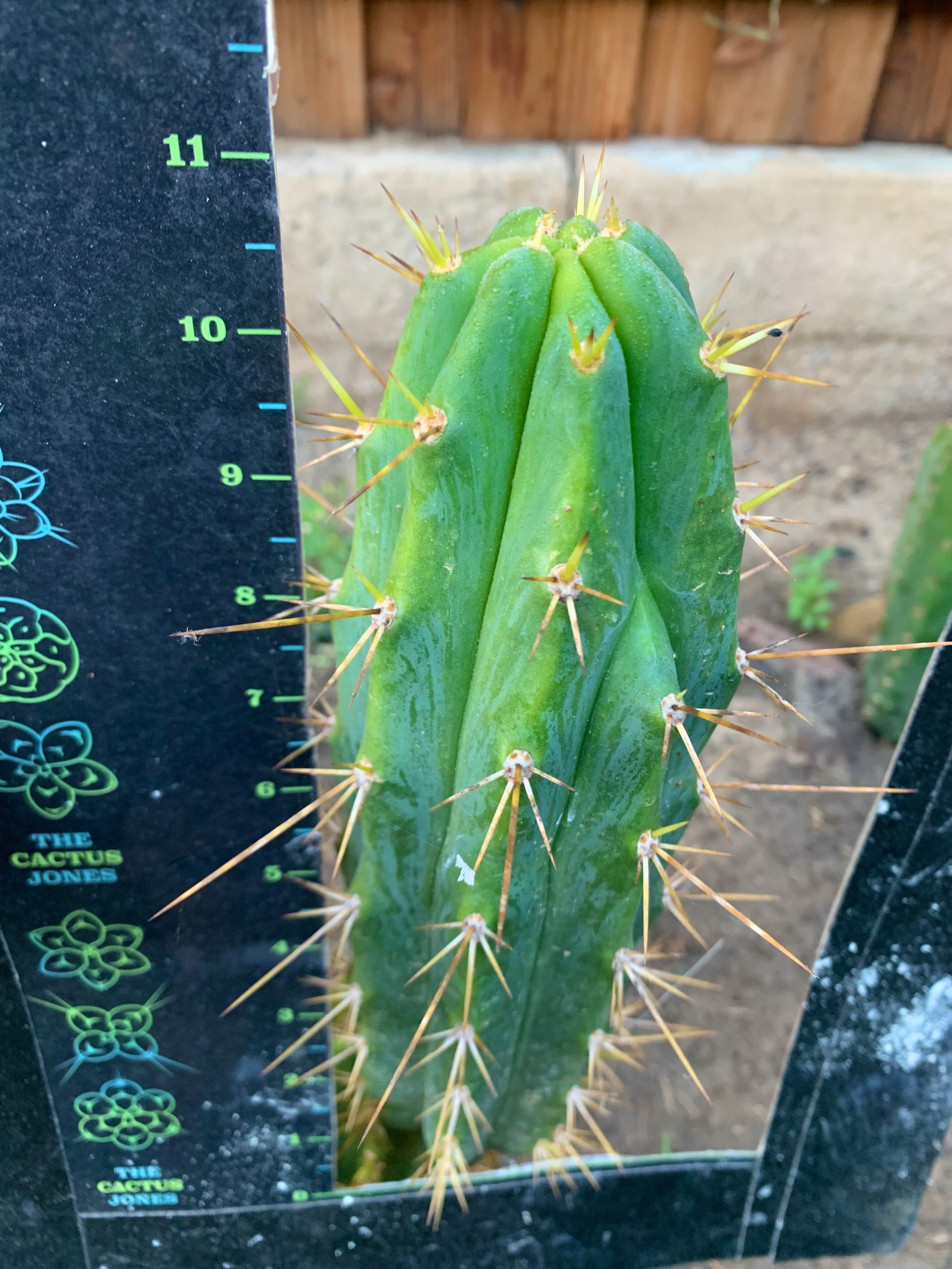 Psycho0’ x SS01 (Bridgesii x Peruvianus) . I love the yellow spines against dark green on this one. Good size 11” pup to be cut upon purchase. .