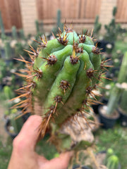 This plant requires protection from freezing weather, but will tolerate high 20s on rare occasion with frost covering. The Cactus Jones ships from a warm climate zone, but please be aware of the temperature in your area — will not be held responsible for frozen (or baked) shipments.