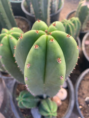 Another first time offering — Scopulicola x Bridgesii “Sina” . I love the small red spines and scop shape on this one. Fatter-than-usual 9” tip to be cut upon purchase.
