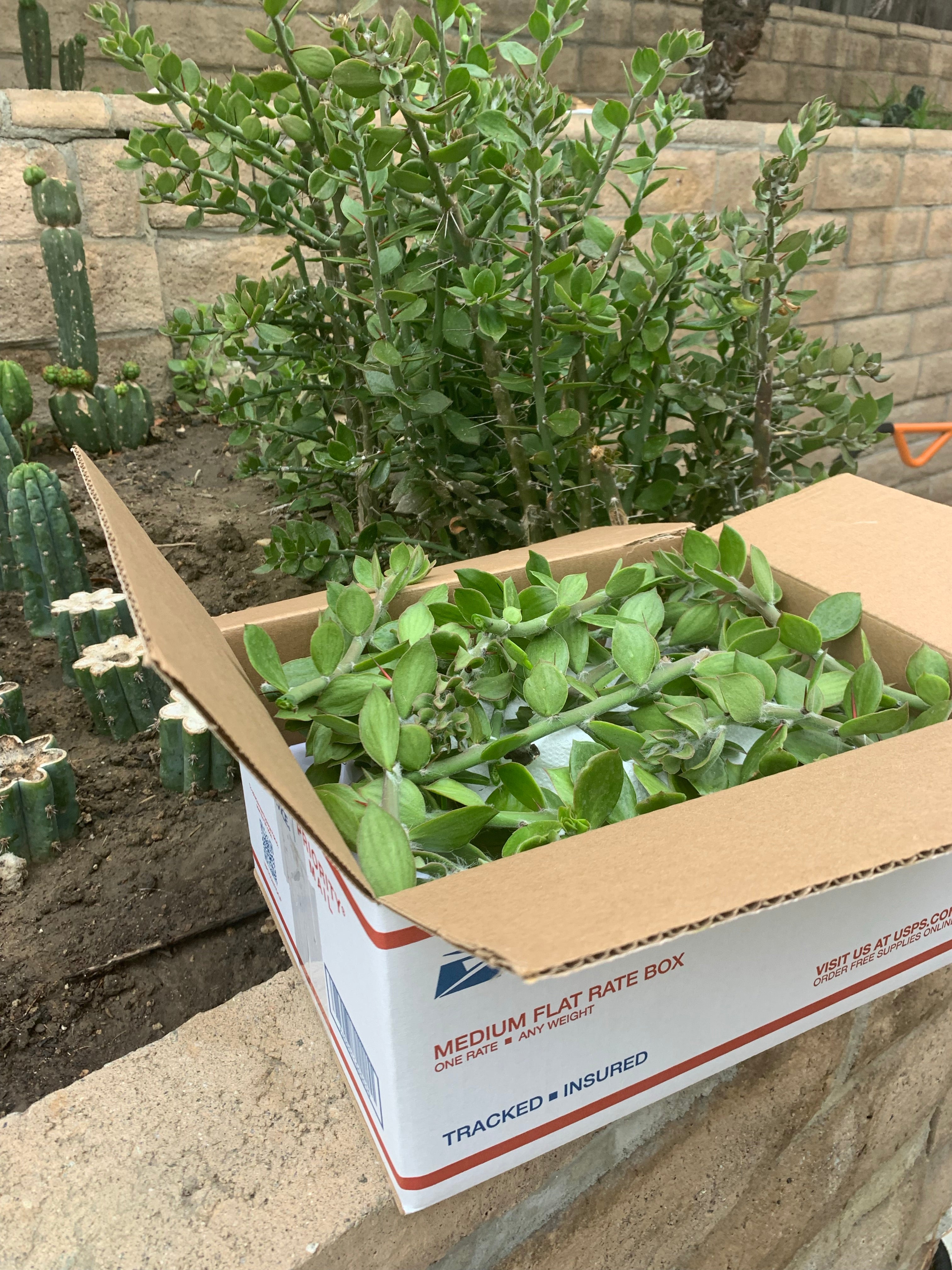 Enough fresh pereskiopsis cuttings to fill a medium sized USPS priority shipper 📦 .  (5-6 layers between paper towels). Best deal on pereskiopsis you’ll find? Maybe.  How many cuttings in the box? I don’t know, a bunch..