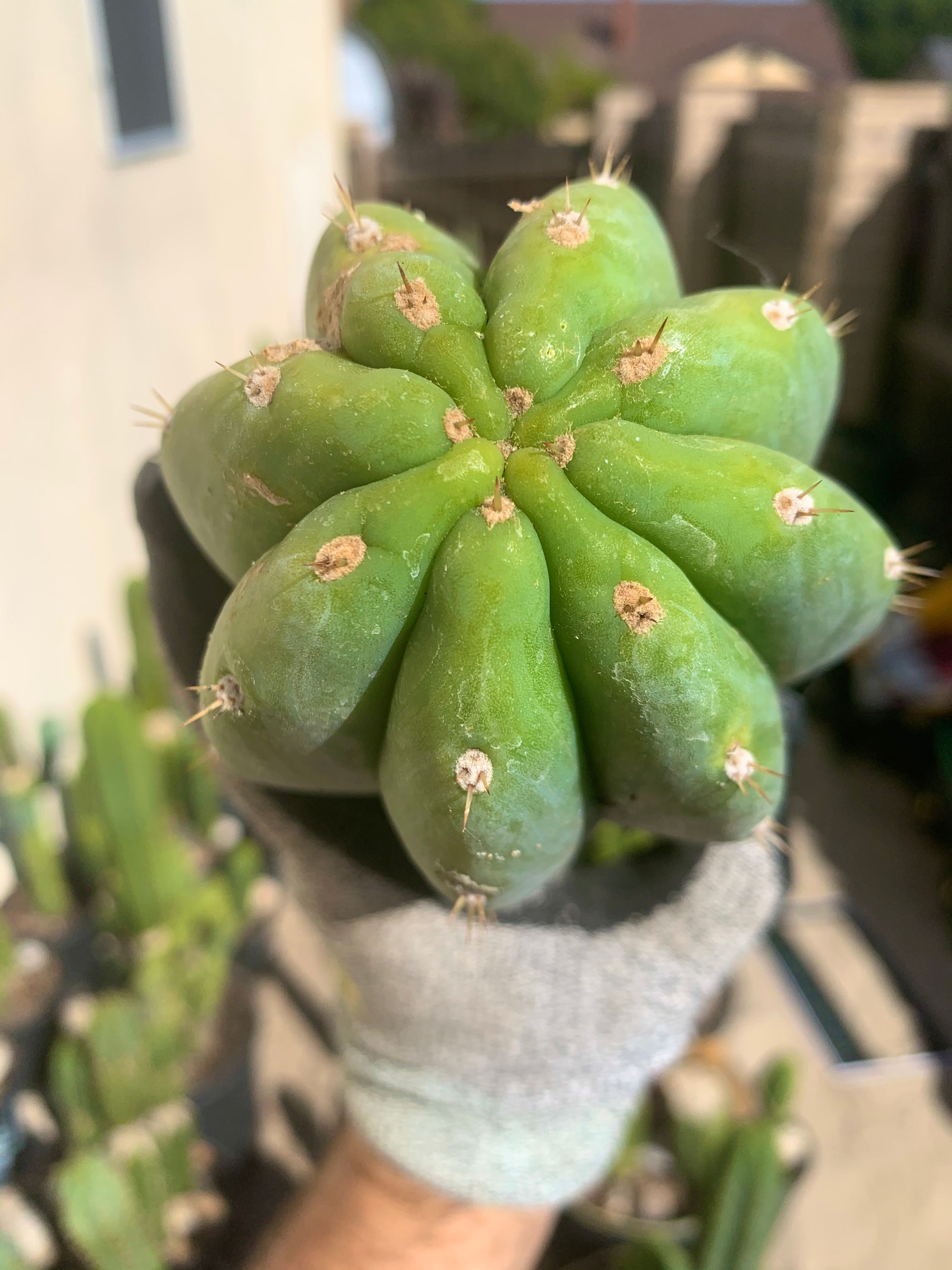 Original plant came from eBay in 2016, labeled Goliath. That means this is actually a Peruvianus, not a Pachanoi. Whatever the exact DNA, it’s an awesome trichocereus. A couple years ago it started stacking (segmented growth) making it even more awesome .