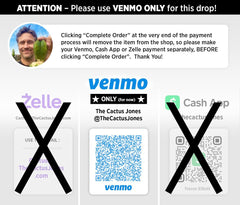 The Cactus Jones ships from a temperate climate zone (no freezing), but please be aware of the temps on your end — will not refund for temperature related damage, whether frozen or cooked.